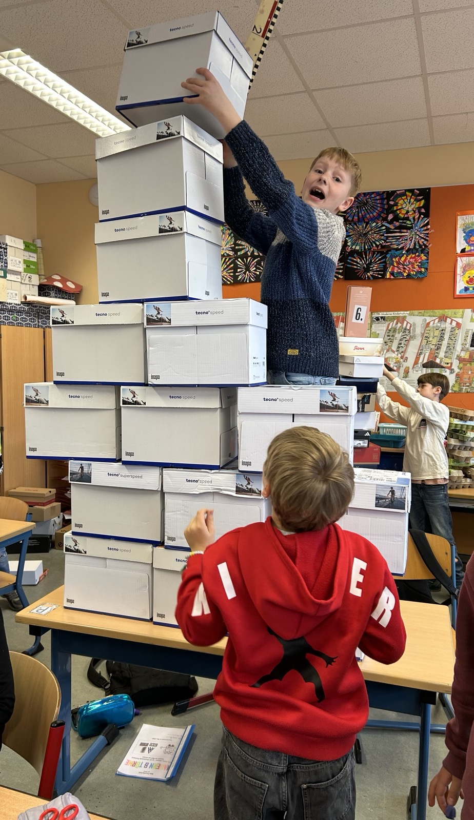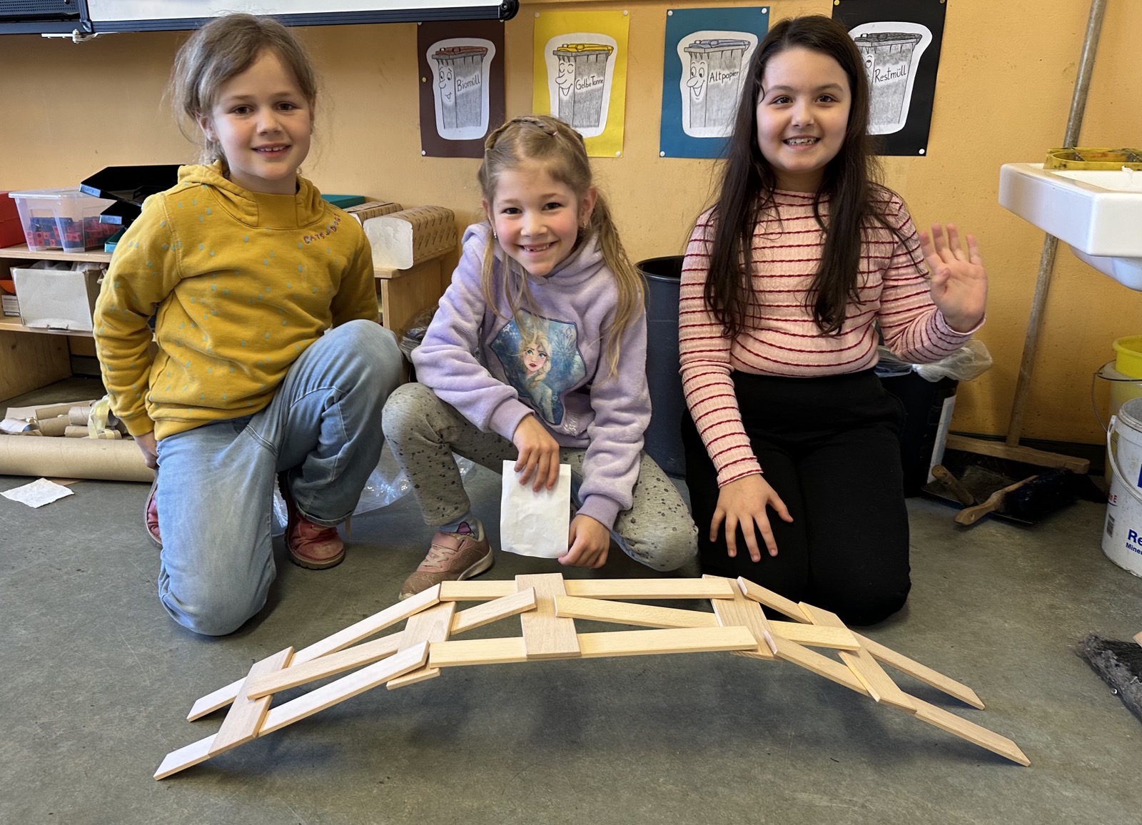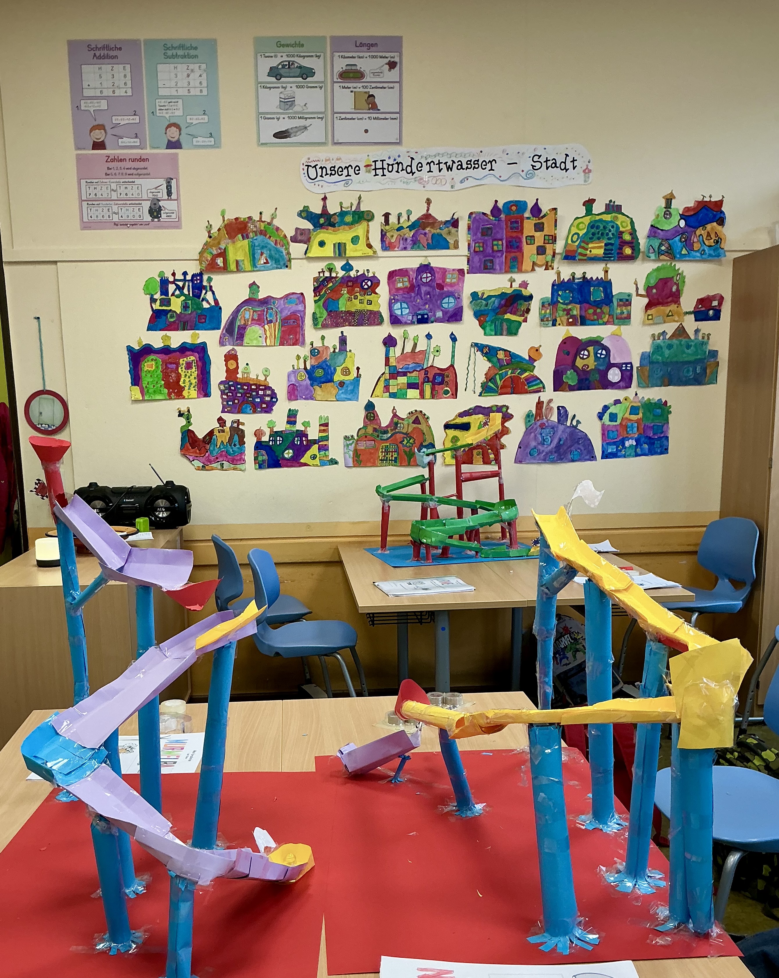 Alle Jahrgänge arbeiteten mit großer Begeisterung an unterschiedlichen Projekten. Der Jahrgang 1 konstruierte kreative Fahrzeuge, während sich der Jahrgang 2 intensiv mit dem Bau stabiler Brücken beschäftigte. Die Kinder des Jahrgangs 3 errichteten beeindruckende Türme und Mauern, und der Jahrgang 4 entwickelte spektakuläre Murmelbahnen.