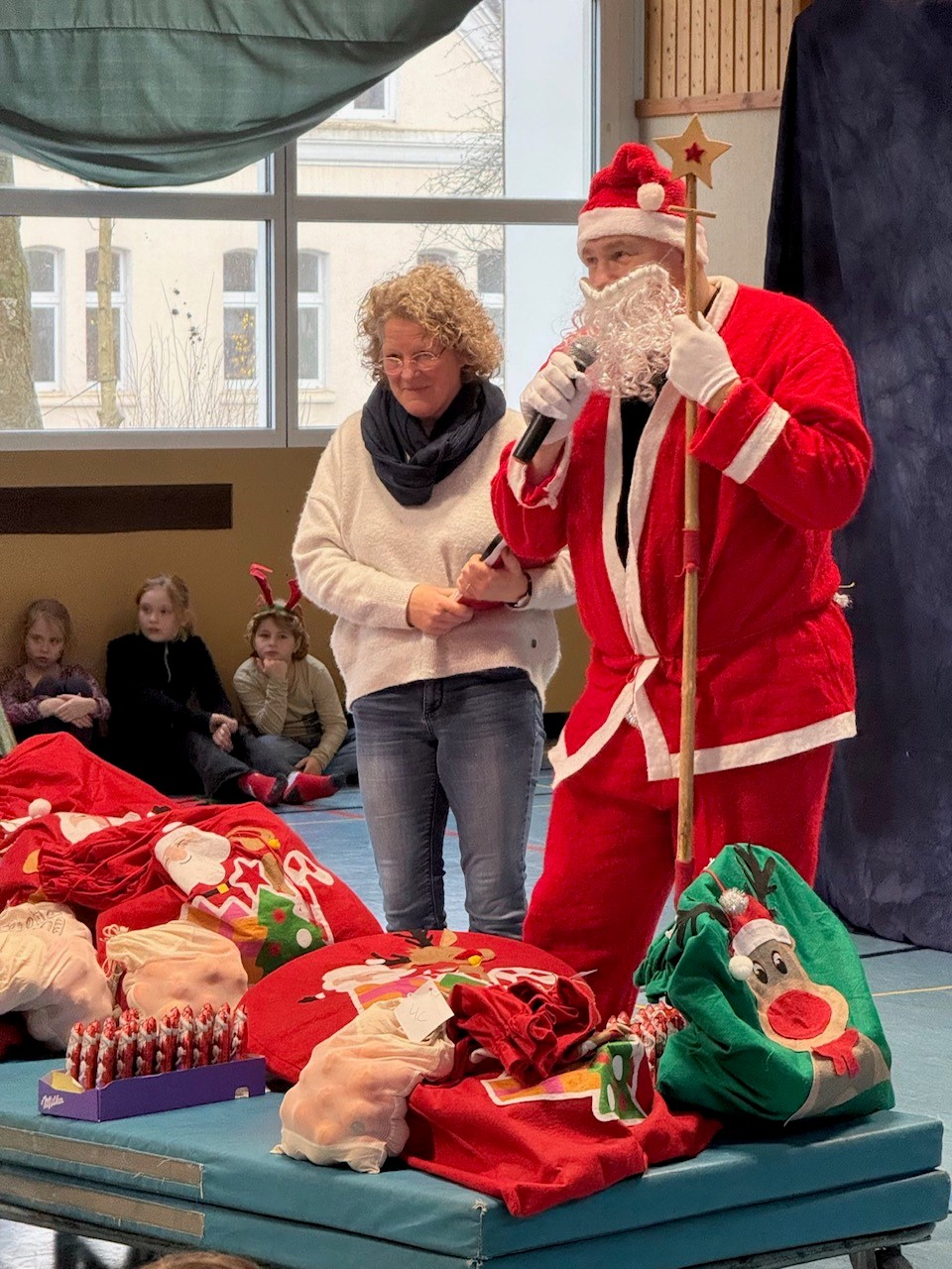 Auch an unserer Schule hat der Nikolaus einen Zwischenstopp eingelegt und Geschenke, Schokonikoläuse und Mandarinen hinterlegt, um unseren Schulkindern am 8. Dezember einen Besuch abzustatten. Alle Klassen trafen sich unter großer Vorfreude in der Sporthalle. Nach einer schön inszenierten Aufführung unserer Theater-AG warteten die Kinder gespannt, ob der Nikolaus wirklich kommen würde.